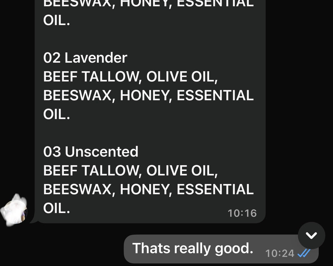 Als ik dit wilde doen, ging ik het goed doen. Ik ging opzoek naar leveranciers, wat niet makkelijk was. Ik heb tientallen fabrieken benadert, maar iedere keer kwamen ze met een ingrediëntenlijst waar je haren recht van overeind gaan staan. (Dit mogen ze verkopen als "Tallowbalm")